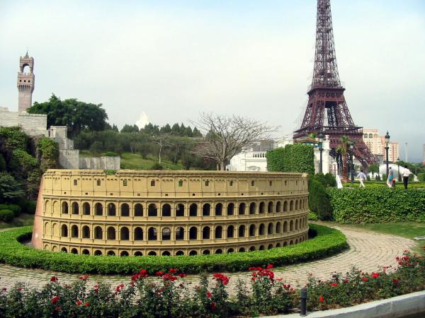 其中包括世界著名景观埃及金字塔、阿蒙神庙、柬埔寨吴哥窟、美国大峡谷、巴黎雄狮凯旋门、梵蒂冈圣彼得大教堂、印度泰姬陵、澳大利亚悉尼歌剧院、意大利比萨斜塔等等。这些景点分别以1:1、1:5、1:15等不同比例仿建,精致绝伦,惟妙惟肖。有些景点气势非常壮观。如缩小为三分之一比例的法国埃菲尔铁塔,高108米,巍然耸立,游人可乘观光电梯到塔顶,饱览深圳市和香港风光。缩小的尼亚加拉大瀑布面宽有八十多米,落差十多米,水流飞泻,吼声震天,声势浩大。喷吐岩浆的夏威夷火山以及百米喷泉,令游客叹为观止。作为景区活动中心的世界广场,可容纳游客万余人,正面有十尊世界著名雕塑,广场四周耸立着108根不同风格的大石柱和近两千多平方米的浮雕墙,还有象征世界古老文明发祥地的六座巨门,一座华丽的舞台,将有世界各地的艺术家表演精彩的节目,让游客在文化和艺术的氛围中尽情享受。 在一片浓郁的荔枝园里,有五十多尊世界名雕,如有"约翰?施特劳斯纪念碑"、"掷铁饼者"、"阿波罗太阳神"、"思想者"等,形笊蜩蛉缟>扒诮煌ㄉ枋?齐备,有高架单轨环游车、游览车,古代欧式马车、吉普赛大篷车、老爷车,单桨木船、橡皮筏,为游客提供多种趣味的观赏活动设施。