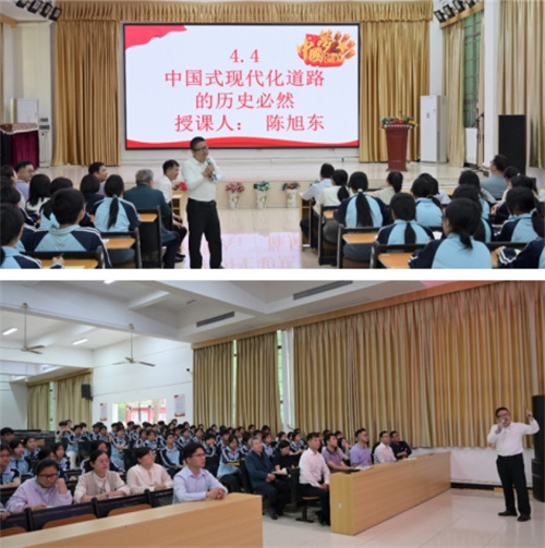 陈旭东书记在学校报告厅为二中师生带来一堂立意深远的思政课,他以“中国式现代化的历史 必然性”这一时代命题,从中国古代GDP和人口数量的阶段性变动数据,并列举近代历史上,欧美国家为维持自身霸权地位,常对新兴大国采取阻拦措施具体案例,展现了中国式现代化的历史必然性。以大历史观打开崭新叙事,运用中华文明史展示中华优秀传统文化底蕴,运用中国共产党人接续奋斗的历史展现社会进步的壮阔征程,在史实钩沉中增强学生的历史自觉与时代使命感,进一步增强了师生的文化自信与使命担当,引发了强烈的共鸣与深刻思考。